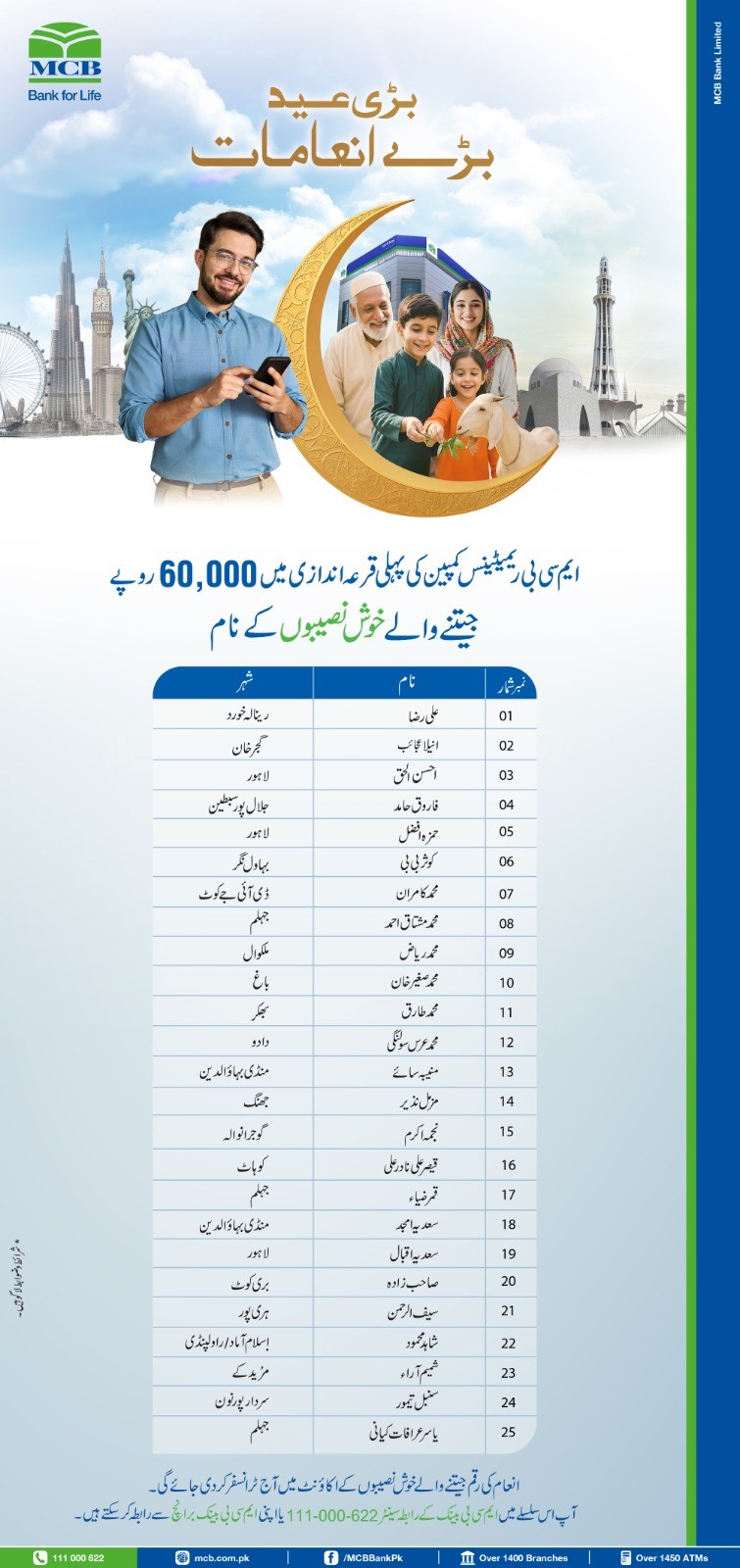 *Terms & conditions apply. For further information, please contact your nearest MCB Bank Branch or MCB Contact Centre 111-000-622